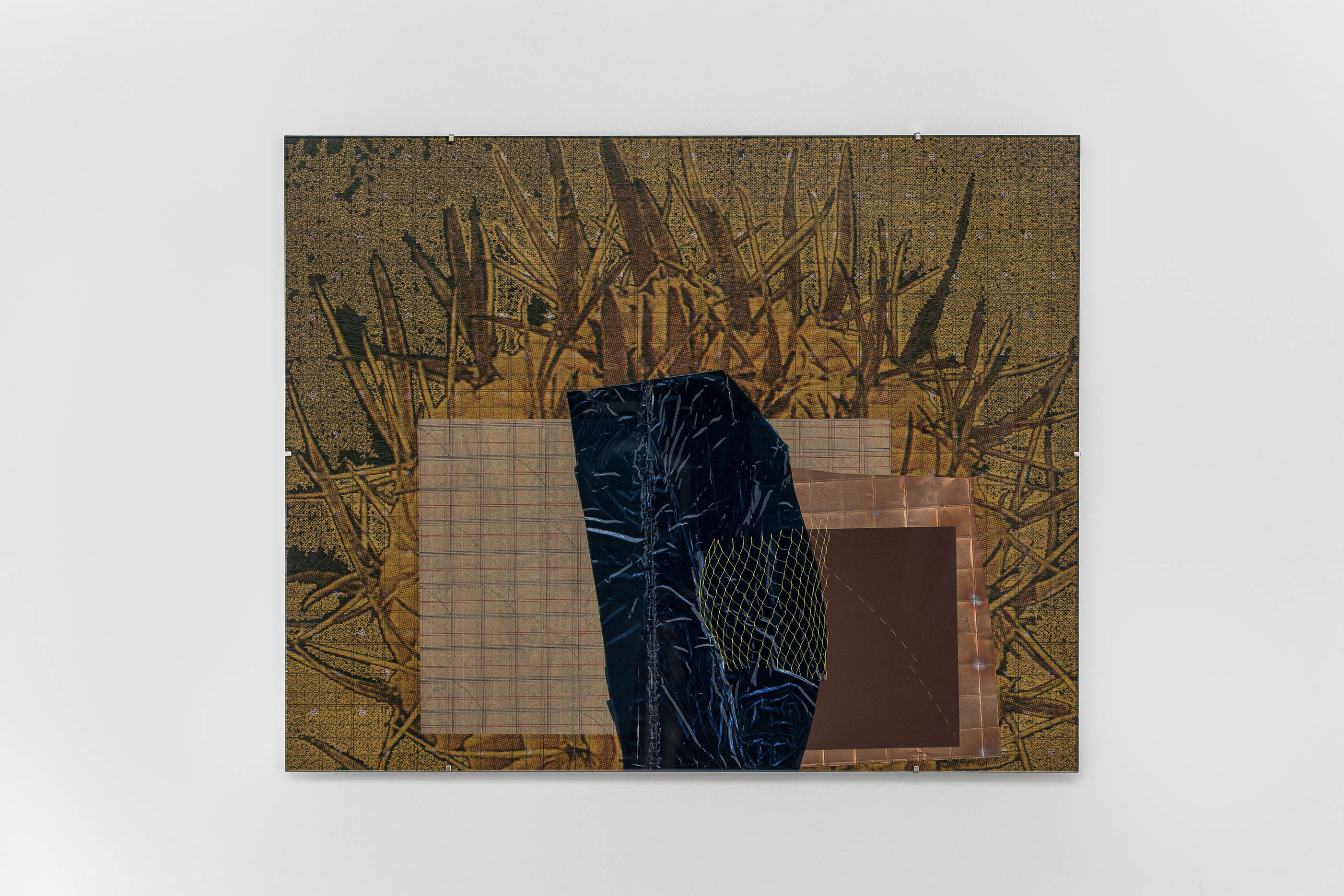 ![]() 《装饰物(局部遮盖)》,2023年,铝箔、UV打印、编辑框架、木板、彩铅、砂纸、尼龙网、丝网印刷,40 × 50 厘米。摄影:章丛欣